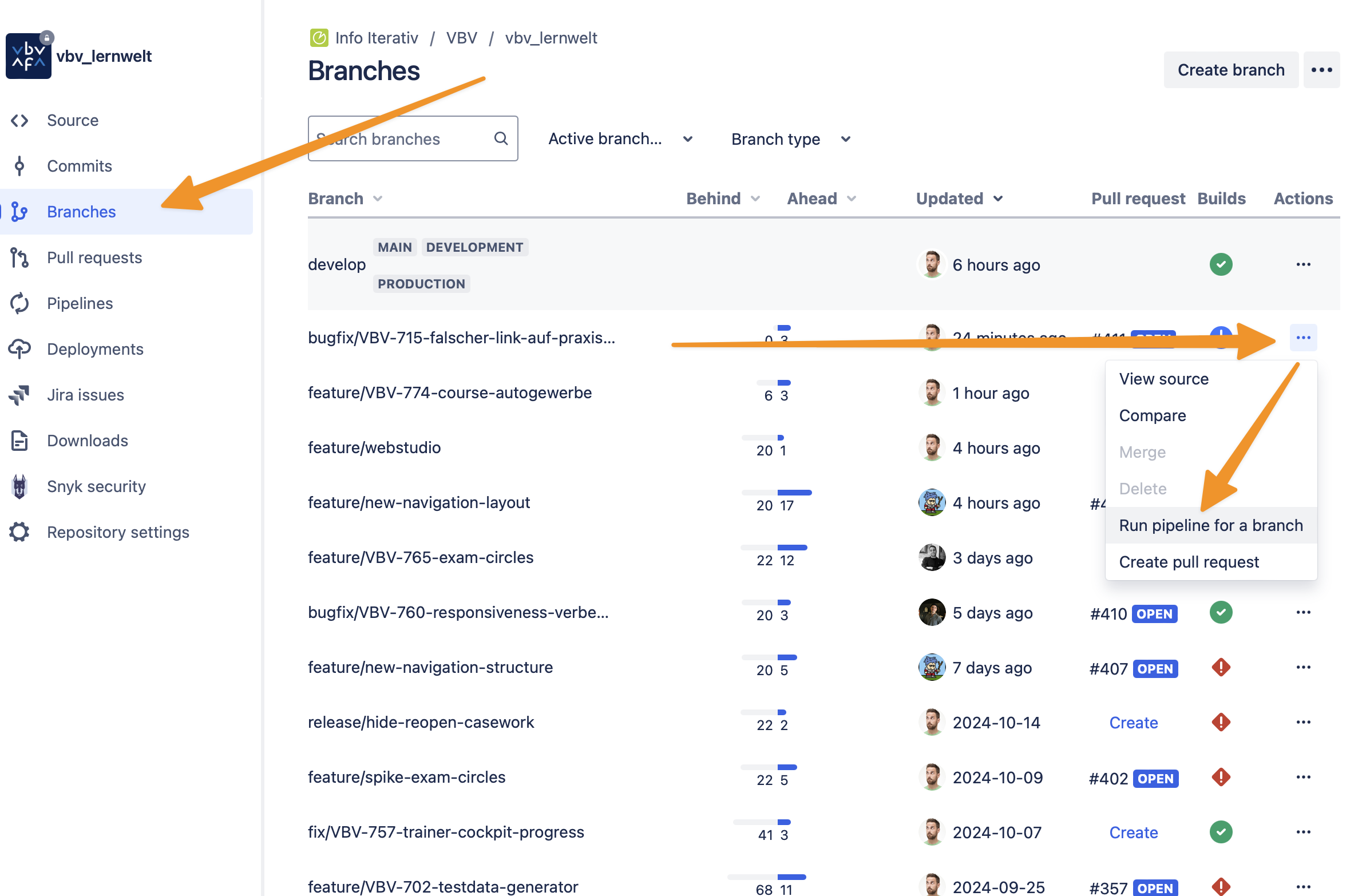 Bitbucket Pipelines name: myvbv https://myvbv.control.iterativ.ch/ https://myvbv.iterativ.ch/v Deployment happens manually via Bitbucket Pipelines